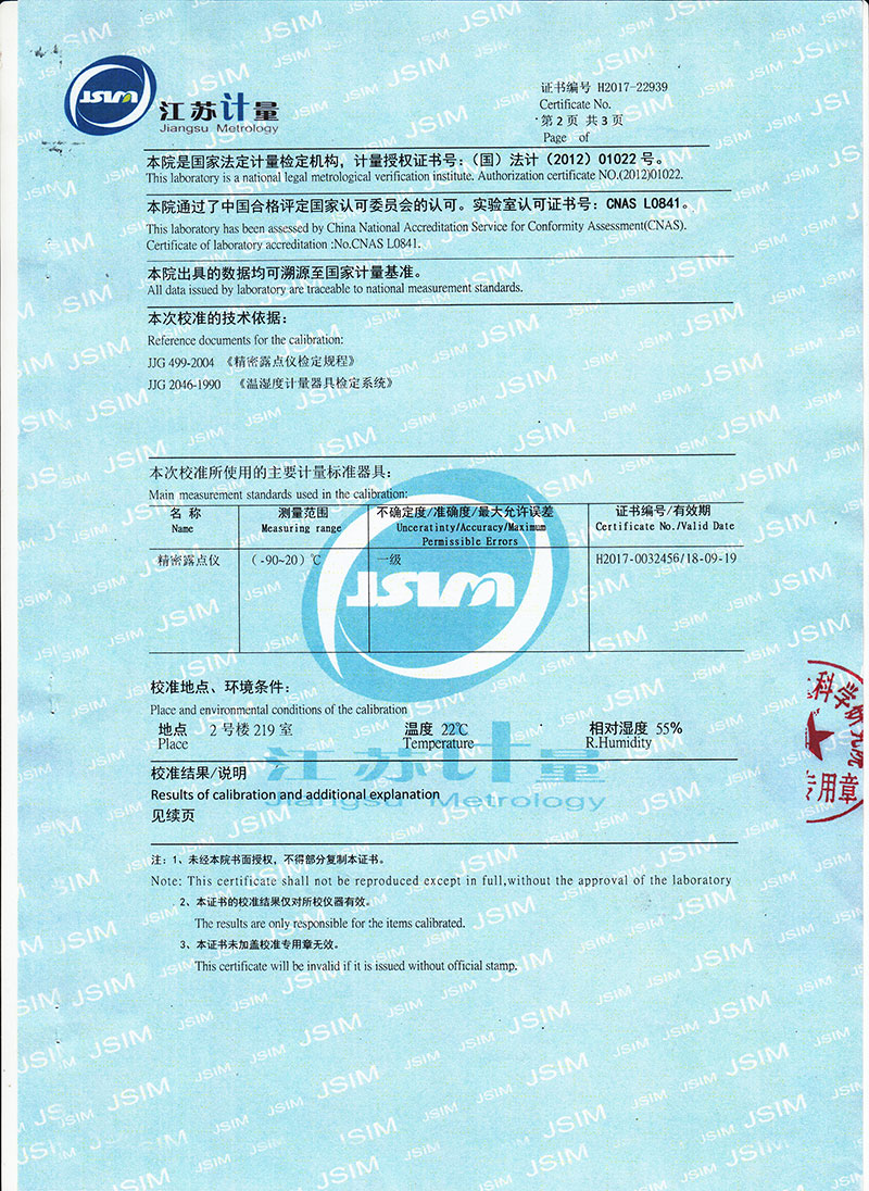 | 露點測量范圍 | ―60℃ — +20℃ |