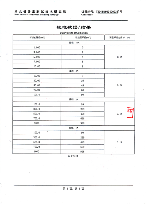 測量范圍 1~1999mΩ