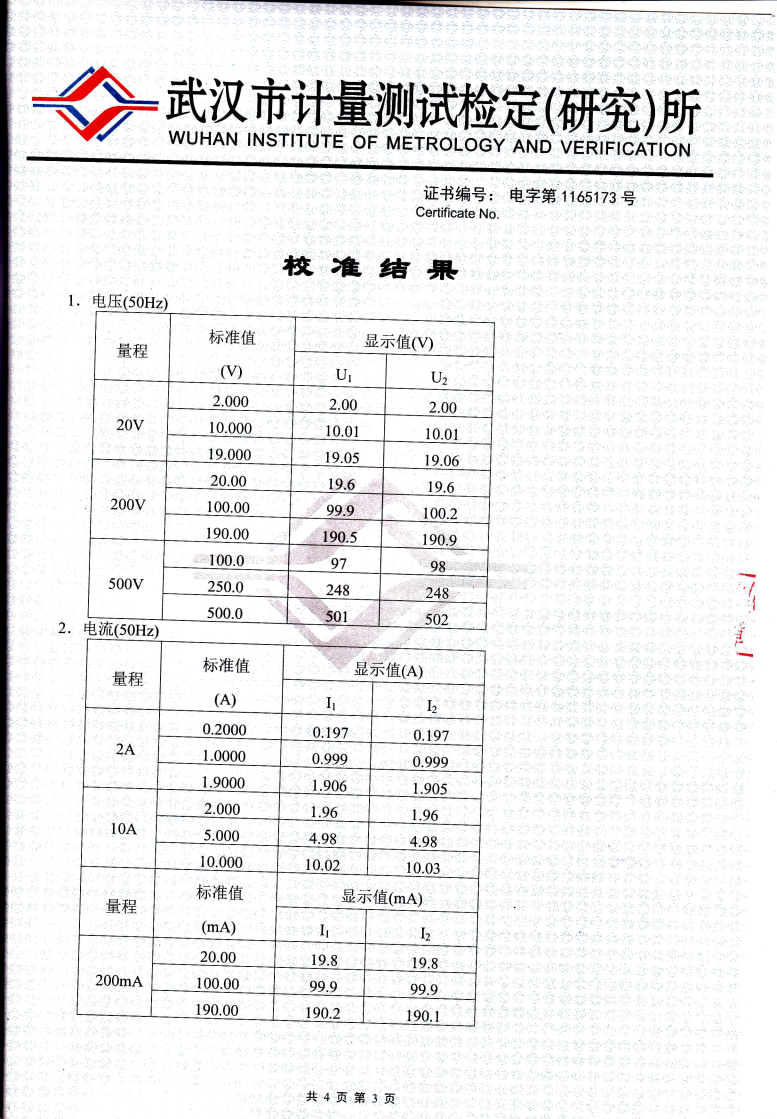 注:相位測量在1.5mA-10mA,5V-10V時,相位誤差為±3°。 額定工作條件下,各被測量的額定工作誤差極限不超過相應基本誤差極限的兩倍。
