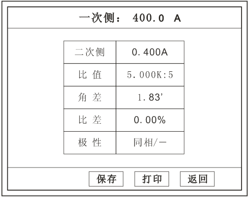 試驗前請檢查 參數(shù)設(shè)置 里的額定變比是否與被測CT額定變比是否一置。不一置時將導(dǎo)致比值與比差的錯誤。
